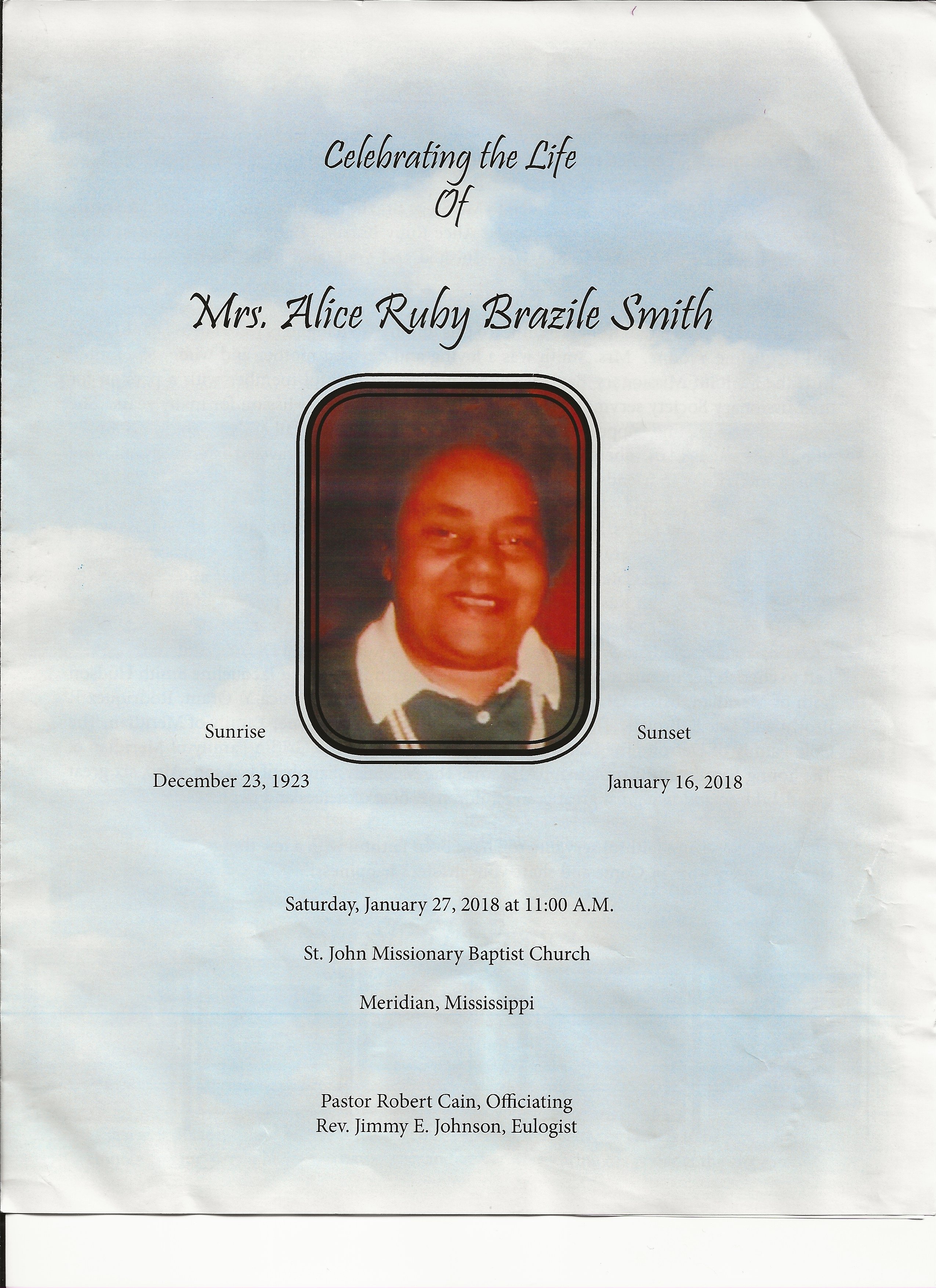 To everything there is a season and a time to every purpose under the heaven. A time to be born and a time to die .... Ecclesiastes 3:1,2a December 23, 1923, a baby girl was born to Mr. Steve Brazile and Mrs. Annis Hendricks Brazi