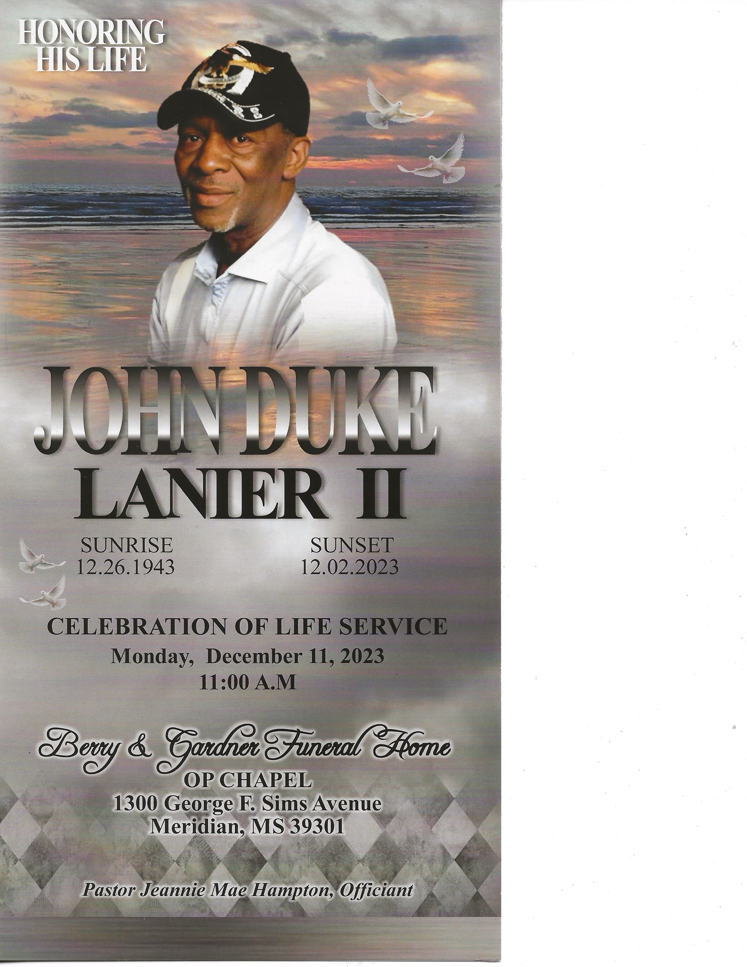 John "Duke" Lanier, II, was born December 26, 1943 in Kemper County, Mississippi, to the late John Lanier and Minnie Lee Davis Lanier, one of three children born to this union. John worked in Dietary at Matty Hersee Hospital for m Read Obituary